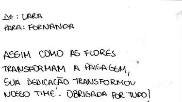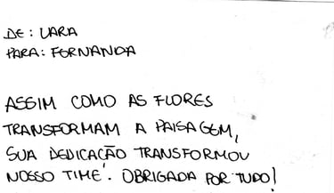 At the end of the project, there was a brief acknowledgment of my work in the squad for the results achieved. A card designed and handwritten by Natura's Design Lead shows how much the company truly values its people, whether they are beauty consultants, internal employees, or contractors. This demonstrates a truly human and respectful connection with others, setting an example for any other team in any industry.